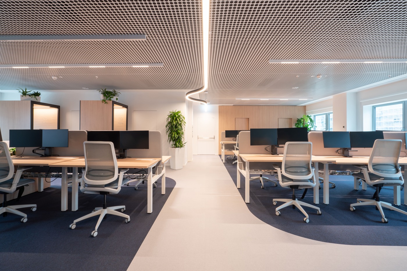 These are the principles guiding the driving experience the brand delivers — and they extend equally to the way the company conceives work and its environments. Mobility, and by extension the workplace, is grounded in experience: engaging, reliable and capable of generating a sense of calm. This vision calls for spaces that are coherent and genuinely supportive of people in their daily routines, reinforcing company culture, wellbeing and a sense of belonging.